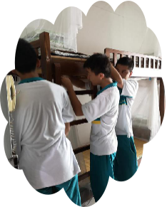 谁说我们不如女生?看!绑纹帐、扶扫把、整被子、捡掉地上的衣架/内衣裤、收拾鞋架,样样搞得掂,呵呵…