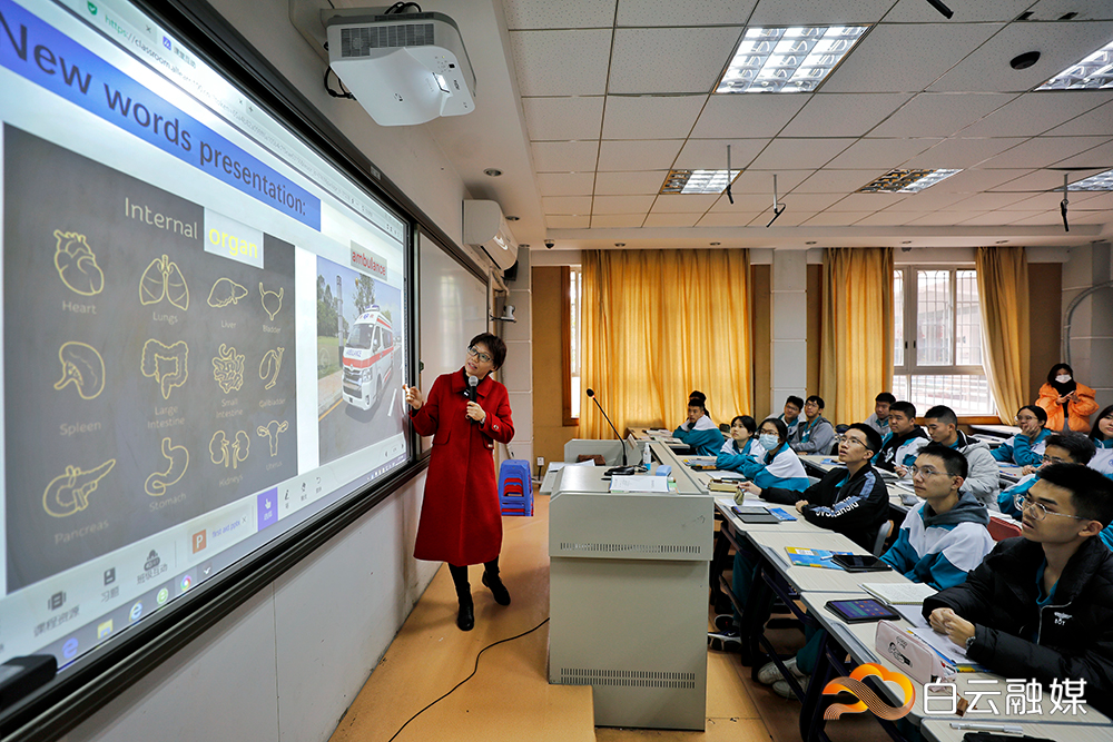 智慧课堂上,广外外校高二摩星一班英语老师肖金辉通过智慧平台执教高中英语课,学生在平板电脑上做题后,系统会自动实时批改,并显示正确率等情况。肖金辉说:“智慧课堂的最大特点就是精准教学和个性化学习,课前引导同学们自主学习,课上实时互动,老师根据分析数据完善自己的备课方案,能够科学有效地提升教学效率。”