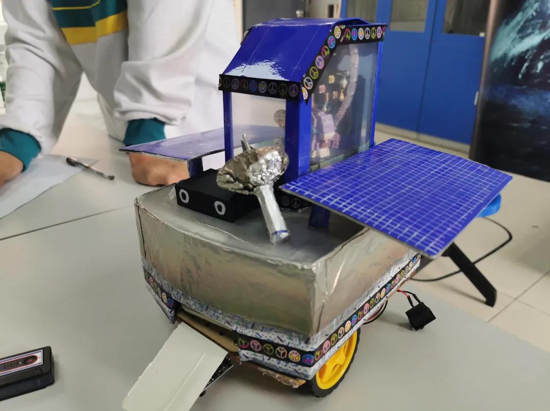 确定主题后,为了汲取创作灵感、解决随时遇到的问题,7名学生和指导老师利用课余时间、周末时间等在线上、线下进行讨论,开展了多次“头脑风暴”。同时,为了让载人月球车更加“像模像样”,实现“登月梦”,学生查找了大量设计资料,不仅要弄懂编码、机器人制造、电路设计等,还要熟悉太阳能板、载人舱、3D打印等各种“高科技”。