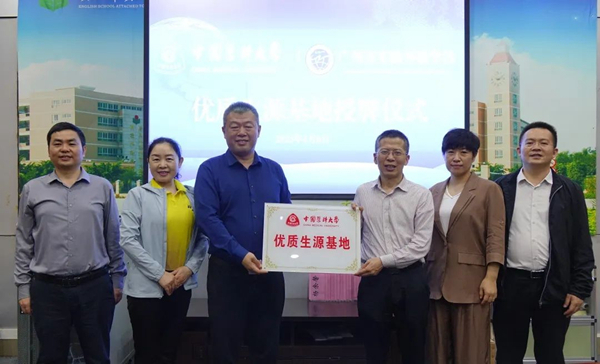 随后,李万冬代表中国医科大学为我校颁授“优质生源基地”牌匾。