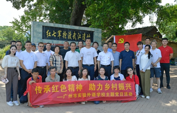 为进一步推进学习贯彻习近平新时代中国特色社会主义思想主题教育,助力乡村振兴战略全面实施,7月11日至12日,广州市实验外语学校党委组织党员及干部代表赴韶关市开展“传承红色精神、助力乡村振兴”主题党日活动。学校党委书记魏传文、校长万清华、副书记李悦明、执行校长熊士军等参加了活动。
