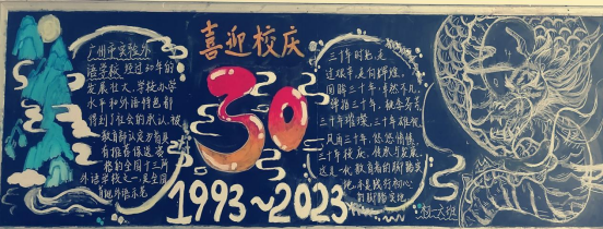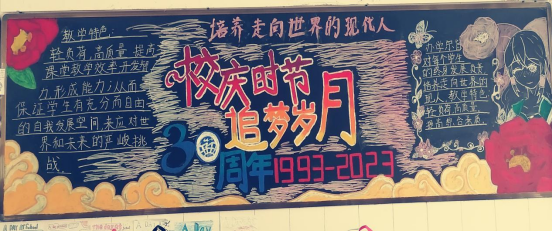 初中部各班积极利用业余时间,积极组织策划校庆30周主题黑板报,同学们将校园的一草一木,一砖一瓦,也将同学们自己的成长作为元素融入黑板报,充分体现了我与外校共成长的情感。例如初三(13)班、初二(5)班等班级将校园中的大榕树与凤凰树画进了黑板报,让黑板报真正与我们的校园生活密切联系在一起。