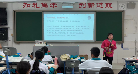 榜样的力量是指从榜样的事迹和行为中获得启示和鼓舞,从而激发自我潜能和追求进步的力量。榜样可以是生活中的亲人,朋友,同事,也可以是社会上的名人,专家,学者等。周日晚,我们班请来了何妈妈,她从她自己的角度出发,在班会上探讨榜样与同学们互动。