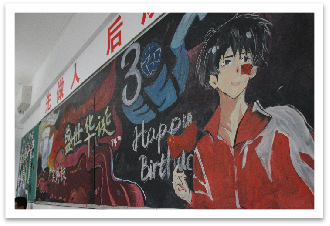 “”勇攀高峰,永不言弃”,红日三班以这八字为奋斗目标,不断朝着它拼搏前进。自信,自强,求真,创新,在墙壁上格外醒目,鼓励他们培养高尚的精神品质。教室后方是三班这一年多来共同奋斗得到的结果,无不体现了三班团结一心的精神,更激励着他们勇往直前。三班的黑板报以外校三十周年庆典为主题,精美大气。