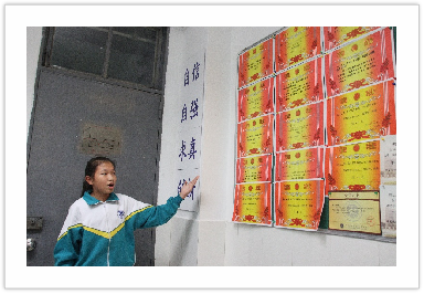 自强不屈,勇往直前。初二九班的教室充满着浓浓的自励氛围,墙壁上张贴的奖状时刻鞭策着九班的同学们。缤纷的照片墙展现了同学们丰富有趣的生活,墙上挂着的压力垫更是为紧张的学习生活又带来一丝愉悦与轻松。绿化环境,美化心灵,九班把绿意和美化带进了教室,整个教室充斥着清新的氛围。愿九班的同学们能久居幽兰而自香,进取向上。