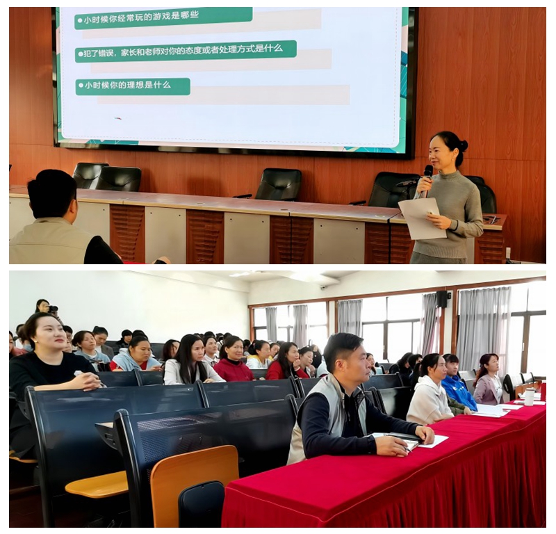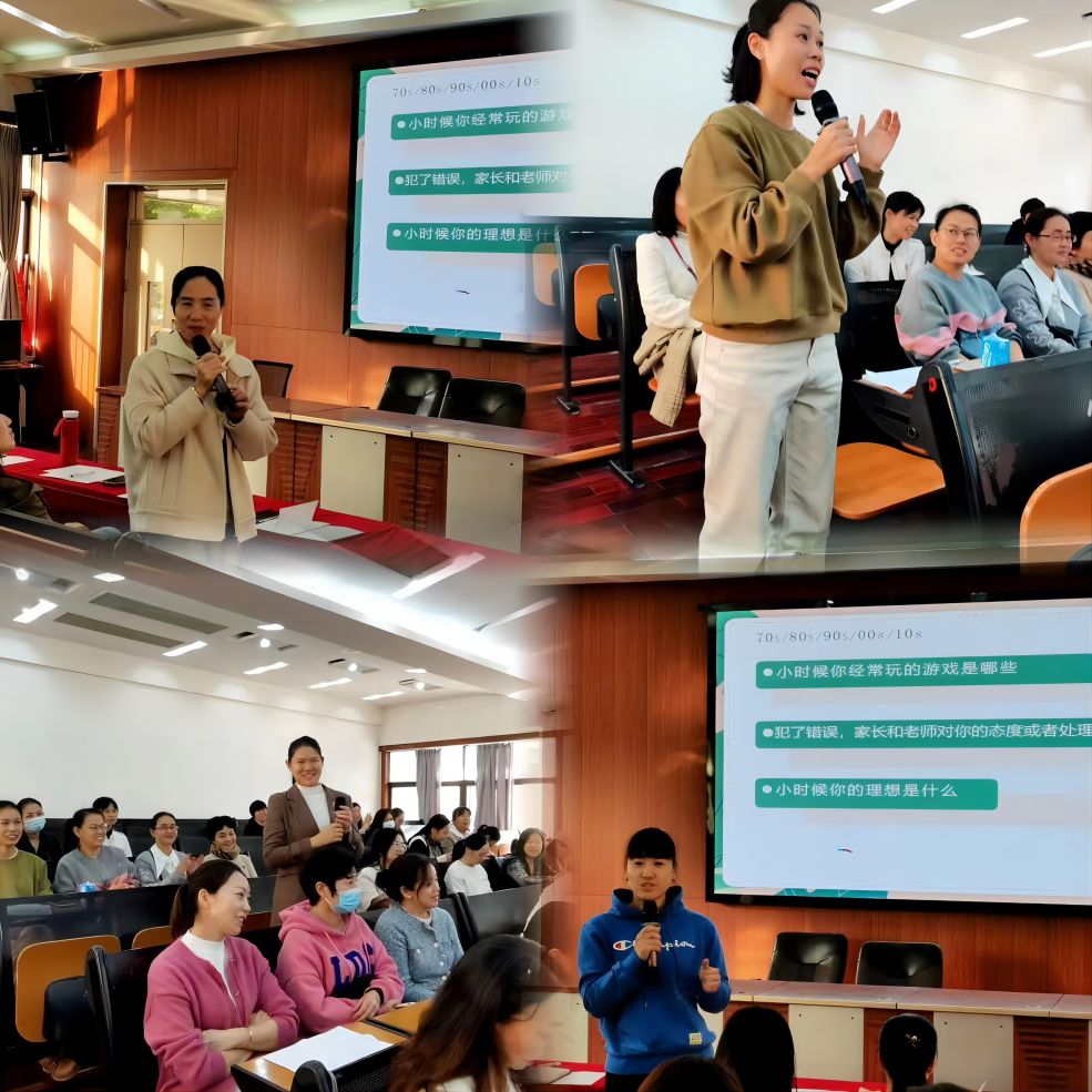 活动开始时,王主管以三个问题为引题,(问题包括:70/80/90后的我们在儿时常玩哪些游戏?犯了错误家长和老师对你的处理方式是怎样的?我们儿时的理想是什么?)激发了教师们的兴趣,不同年代的老师纷纷发言,回忆儿时,热情分享。活动在热情洋溢的氛围中展开。各年级的优秀教师代表们依次上台,她们从不同的角度,分享了自己对于生命教育的理解和实践经验。