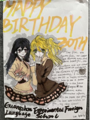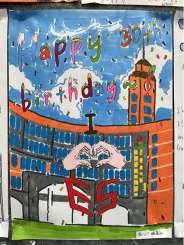 在外校30岁生日之际,高一的同学们用精心的设计、多彩的图画、暖心的话语表达对外校30华诞的祝福,他们以爱的表白作为主题,将这份祝福化作最美的礼物呈现给外校。中学教学楼中庭弥漫着爱的氛围,手抄报展板闪耀着温馨的光芒。高一的同学们积极参与,用每一笔每一画、每一句祝福语,在画布上绘出对外校往昔的回忆和未来的美好祝愿。而富有创意的设计更是让人赞叹不已。他们巧妙地将“30”和爱的元素相融合,构思出独特的图案,将这份祝福呈现得淋漓尽致。重要的是,高一的同学们用暖心的英文表达了对外校30华诞的祝福。这些话语简短而真挚,透露出他们对外校的无比感激和深深的情谊。愿这份爱如同春风般温暖外校的每一个师生,让这份爱如同阳光般照耀外校的每一个角落。愿外校的明天更加美好,愿爱与祝福永远伴随着外校前行的脚步。在这个特别的30岁华诞,高一的同学们用心灵之笔书写了一段珍贵的回忆,谱写了爱的华章。