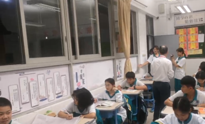走到清北十一班的教室门口,同学们满怀热情地为领导讲解着班级的文化,这是一个和谐,积极的班集体,这个班集体还分为若干个小组共同体,大家一起快乐成长,全面发展。十一班强调团结,诚实和进取,呈现出学风严谨的的氛围。广实外校,风华正茂,莘莘学子,群星闪耀,团结拼搏,母校骄傲!