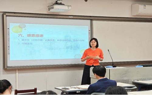 吕亚威老师分享了她在本年级工作中的感受,吕老师自谦的说她不善言辞,并且还些许社恐,但往往质朴的语言和真挚的情感才最能打动人,她用自身的亲身经历向大家展现了一个充满爱和温暖的年级大家庭,表达了自己对本年级的高度认可和感谢,这个年级让她感受到前所未有的幸福感和获得感。
