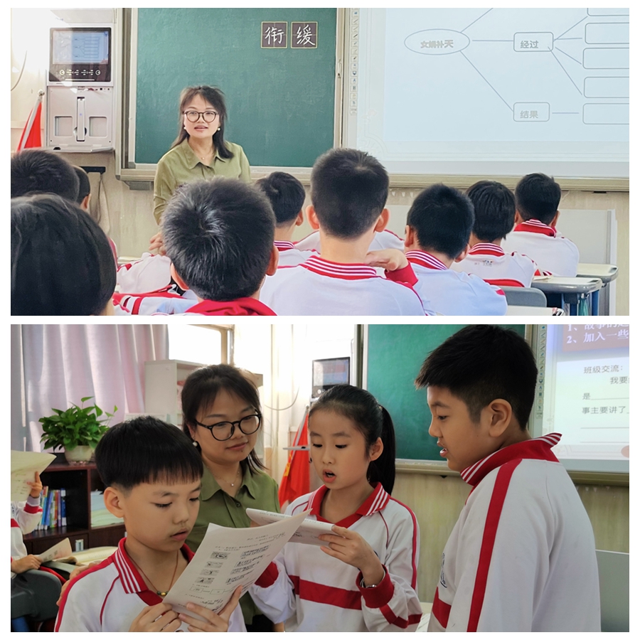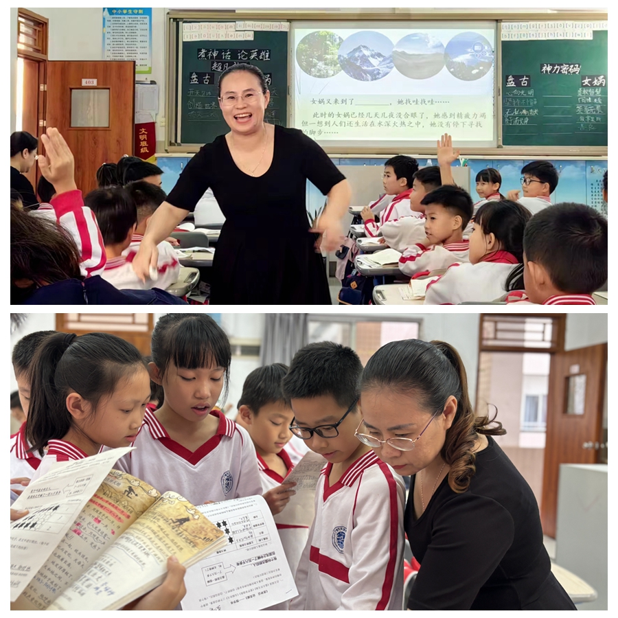 陈泽敏老师在教学中,依托学习任务群,将《盘古开天地》、《普罗米修斯》和《女娲补天》三篇课文进行整合,搭建内容、任务、助学三维一体的系统支架落实感受神话的神奇,体会鲜明的人物形象这一单元语文要素。