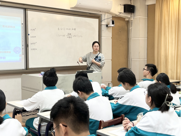 生物元振羽老师在高一创实2班授课,课题为《光合作用》。以中国科学家成功实现从二氧化碳到淀粉的人工合成为情境,从光合作用经典实验探究入手,探究光合作用的原理,构建光合作用中光反应和暗反应的模型。运用模型来模拟人工合成淀粉的途径。教学过程中通过一境到底,在探究经典实验的过程中培养学生的科学思维能力,让学生在学习光合作用原理的过程中学会构建概念模型,在运用模型的过程中建立起物质和能量观等生命观念。
