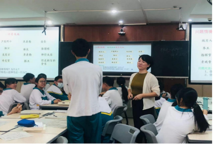 第三位上场的是历史组许晓敏老师,别看许老师年轻,但教学经验丰富,且课堂掌控能力老道。历史是人类文明的缩影,也是我们了解过去、展望未来的必要途径。然而,历史信息的获取往往是学生最大的问题,于是许老师将本节课的重点研讨方向确定为信息提取类型材料题的指导与训练。许老师以2021-2023年广州中考历史信息提取类型材料题分布统计为导入,从学生的错题中入手,让学生直观感受到做题时的难处,总结失分原因。然后对症下药,寻求解题方法;介绍信息提取类型题目的通法指导,让学生初步掌握解题的方法,为接下来的实践奠定理论基础。通过真题训练让学生学会运用方法去解题。学生经过独立思考、小组讨论,展示、生生互评和师生互评的环节,真正理解到解题的方法以及评价的维度,提高对中考的理解和站位。同时重视初高中衔接,关注学科改革过程中学生学科素养的培养方向。