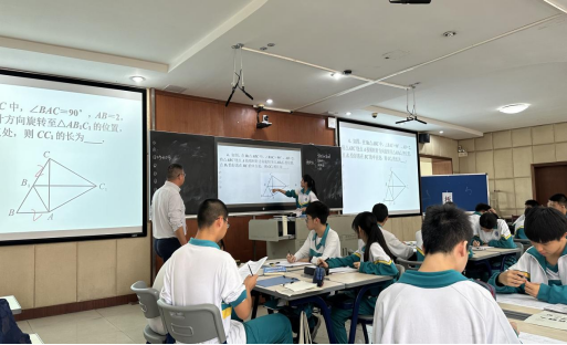 最后出场的是数学组杨正光老师,杨老师不仅精选了旋转应用的经典案例,更加入了生动有趣的元素,让学生在小组合作的氛围中,层层深入,不断挑战和展示自我,在轻松的氛围中深刻理解旋转的思想方法,收获成功的喜悦。通过调研学生的学科水平和兴趣,他巧妙地设置问题,引导学生思考,为公开课奠定了坚实的基础。