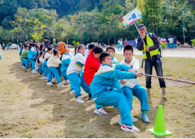 刚开始,我们的总教练安哥带我们跳了一个热身操,便开始了一天的活动。拔河,毛毛虫,飞盘等等,大家玩的都很开心。我突然觉得这个世界美好无比,晴时满树开花,雨天一湖涟漪,阳光席卷着每个人的身体,微风穿越在我们的指尖,一切与美好的相遇都发生在了今天。大家眼中跃动着光芒,玩着一个又一个的项目,就连平时不怎么爱说话的同学,此时此刻也开始跟同学们一起参与这些活动。