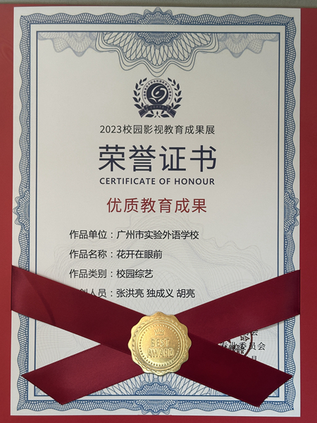 我校电视台选送的《花开在眼前》《天鹅湖与雏菊班》《相信未来》《童心中国》四部电视作品从选送的1000余部作品中脱颖而出,均荣获最佳教育成果奖。