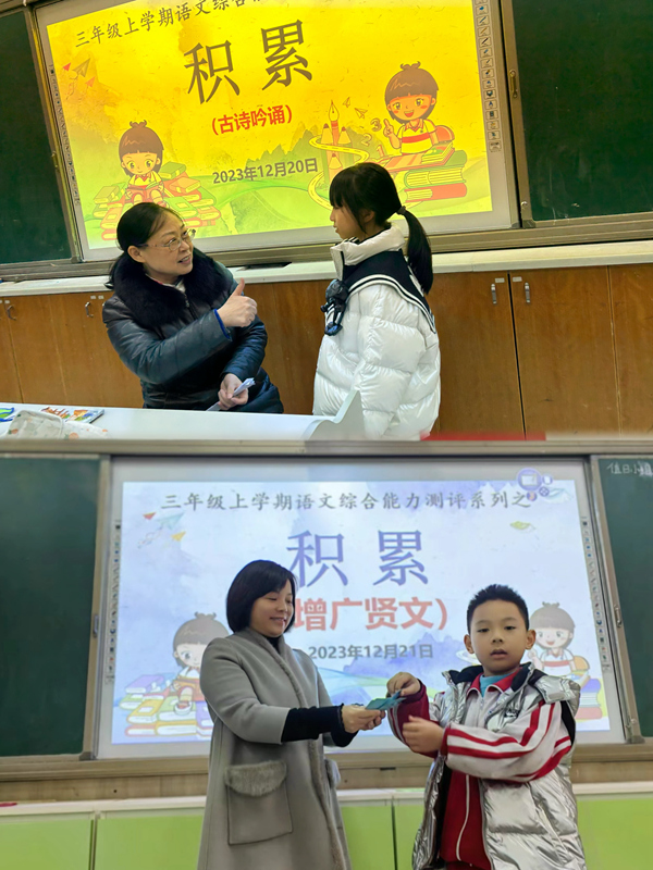 通过本次阳光评价活动,老师们欣喜地发现孩子们都做到了厚积薄发,出口成诵,也借此机会积极地查缺补漏,巩固提高,从个人到同桌,从小组到全班,形成了浓厚的语文学习氛围。弘扬优秀传统文化,扎实语文基础学习,孩子们一刻都没有懈怠,三年级备课组的老师们也定会竭尽全力,创设快乐的学习情境,让孩子们学有所成。