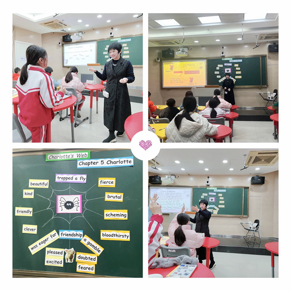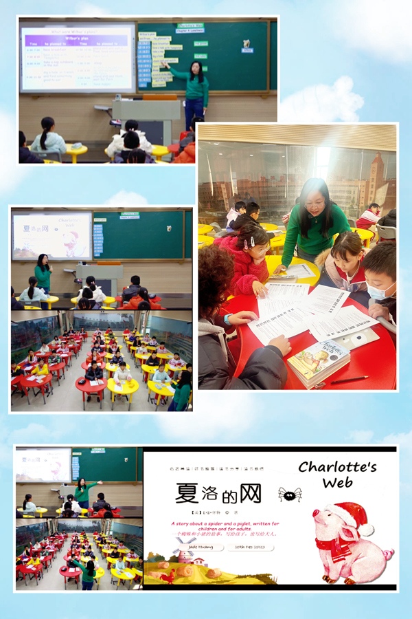 《2022年版英语课程标准》明确指出,教师应当“指导学生坚持开展课外阅读,注重培养和发展阅读素养。” 这个学期,在叶校和蔡校的引领和指导下,五年级英语备课组的老师带着学生第一次开始尝试阅读英文原版长篇小说Charlotte's Web《夏洛的网》。不得不说,当接到“开展英文原版整本书阅读”这个任务的时候,无论是老师还是学生,都觉得这是一个不可能完成的任务。但是,困难归困难,老师和学生们还是勇敢地迈出了艰难的第一步。在实施的过程中,蔡校亲自下一线调研并示范上课,老师们也不断摸索、总结经验并通过教研交流经验,以此同时,老师们也根据学情想了很多办法带着学生一路前行。经过一个学期的努力,Charlotte's Web里面有趣的情节、幽默的写作手法、立体鲜活的人物角色形象已经逐渐吸引了一批学生,他们也逐渐开始喜欢上了阅读这本书。因此,本学期的公开课,五年级有四位老师主动投“网”,一“网”情深投入到“英语原版长篇小说章节导读” 研究中来。