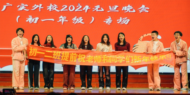 12月26日晚,广实外校初中部初一年级精彩纷呈的元旦节目如期汇演。春华秋实,广实外校建校三十周年铸就辉煌。展望新年,莘莘学子龙腾虎跃与母校共成长。风华正茂的学子们在外校广袤的舞台上展现自我,展现青春活力。