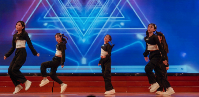 混合着时代的气息,绚烂的舞姿,生命的魅力在这里挥洒,青春的风采在这里绽放。初一(6)班带来的《YES!OK》轻舞飞扬,用自信诠释温柔。伴随着悠扬的旋律,他们用每一个动作诉说内心的温暖,感受舞蹈带来的恬静与美好。
