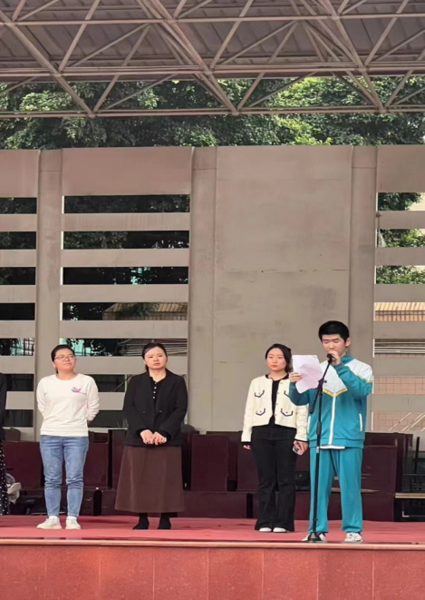 初三9班梁芷宁,初三12班岑思颖,初三13班周睿和陈瑜思同学激情演绎英文歌《believer》,得到了现场师生们的热烈掌声。