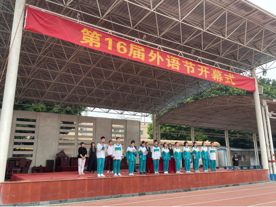 周一的早上,在鲜艳的国旗下、庄严的国歌声中外语节拉开了序幕。执行校长熊士军、初中部副校长刘军勋、初中部教学处主任王攀峰老师、副主任王佳琼老师,初中部学生处主任杨世华老师,副主任罗萍老师,团委书记曾勇老师,英语教研组长曾文莉老师,二外组教研组长李竞星老师及初中部二外组老师以及初中三个年级的师生一同参与。开幕式第一项升国旗,奏国歌,全体师生齐唱国歌,向国旗行注目礼,升旗仪式由初三凌峰13班负责。