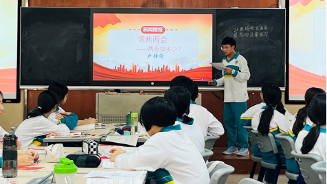 3月21日,是正式上课展示时间。首先,按照道德与法治课的惯例,学生进行时政新闻播报。借助学生的新闻播报引入课题。