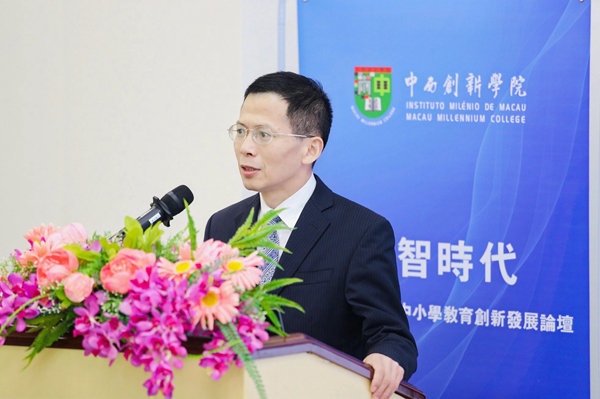 3月22日,数智时代粤港澳大湾区中小学教育创新发展论坛于澳门中西创新学院研发基地隆重举行,该论坛由澳门中西创新学院主办、澳门教育及青年发展局支持。来自粤港澳大湾区中小学教育领域的各界代表教育专家和学者齐聚一堂,交流和分享教育创新领域的研究成果和实践经验,探索中小学教育领域在数智时代的创新发展。我校校长万清华受邀出席论坛并做主旨发言。