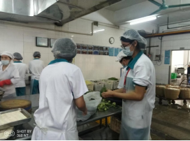 今天在学生饭堂中实践的同学们,不是在书声琅琅的读书声中开始新的一天,而是在刀锋削过萝卜的“唰”声,鸡蛋被敲碎的“啪”声以及西蓝花被撕成条状的“嚓啦”声开始了精彩又疲惫的一天。一次次弯下的腰身,无数次经水冲洗过的双手,还有一张张喜洋洋的笑脸都是他们一天的劳动是艰辛的,美味的食物是来之不易的,从前对饭堂的些许抱怨变为了理解和感恩。