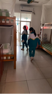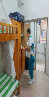 温馨舒适的宿舍,是我们生活的保障。跟着生活部张总管,走进每一间宿舍,细致认真的检查内务。跟岗值班,认真负责,热情为同学服务。