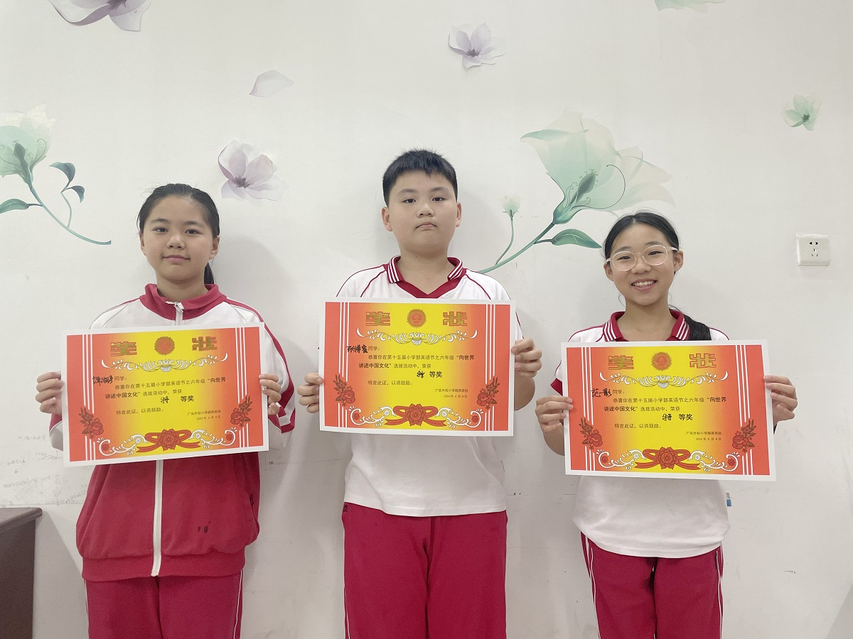 最终,六( 7 )班的谭湘彦, 六( 9 )班的范一影和六( 6 )班的张博睿三名选手脱颖而出,成为种子选手,他们将代表六年级参加全校“广外杯”选拔。祝贺他们,同时也预祝他们在新一轮的比赛中脱颖而出。