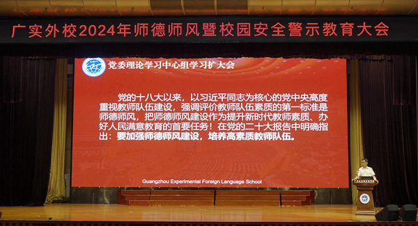 4月12日,我校召开师德师风建设暨校园安全警示教育大会。全体教职员工参加会议。会议由党委副书记李悦明主持。