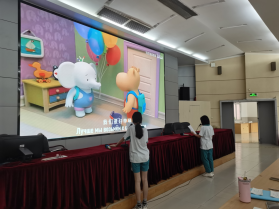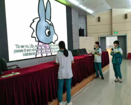 虽然学习第二外语时间不长,但是同学们毫不怯场地站到台前向大家展示二外配音的魅力,随着影片片段开始播放,能够迅速马上进入角色,语音语调的模仿以及情感的代入都可圈可点,台下观众也被其带入到影片的氛围之中。