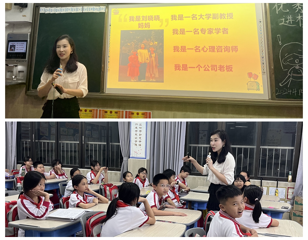 4月14日晚,五(1)班主题班会照常进行,但班级教室内“热闹非凡”。这次“优秀家长进班级”主题班会活动迎来了一位特别的讲者——本班学生刘晓晓的母亲,她是一名学者,是一名心理咨询老师,更是两个宝贝女儿的妈妈。她不仅在家庭教育中有着丰富的经验,也是班级公认的优秀家长代表。此次“优秀家长进班级”的活动,旨在通过优秀家长的亲身经历和教育智慧,为孩子和家长们提供学习借鉴的机会。本次主题活动是五年级组开展“优秀家长进班级”家庭教育主题活动的延伸。