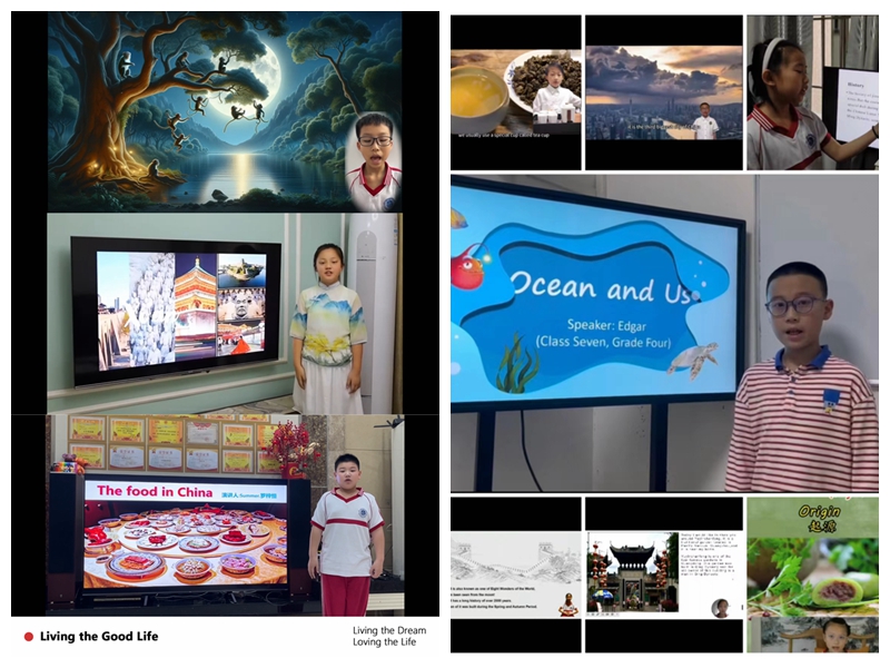 大家快看!同学们为了这个活动提前做了万全的准备。周末时间孩子们去了自己喜爱的景点,拍摄了春日里的一项活动或一处美景,做成了漂亮且水平高的视频。部分同学更是聚焦中华文化:传统民俗、饮食特色、一处名胜古迹或自然风光,亦或者是人文传记、历史趣谈等。同学们在视频中侃侃而谈,从中展示出自己的个人风格和魅力。还有部分同学,他们选择了自己最喜欢的绘本,用英语绘声绘色地介绍着,让我们一起感受到了绘本的魅力。同学们提交并呈现出了大量质量高,内容丰富的视频作品。