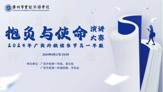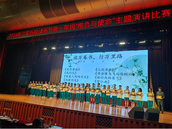 2024年4月17日,广实外校读书节高一年级演讲大赛暨读书之星颁奖晚会在黄华楼隆重举行。