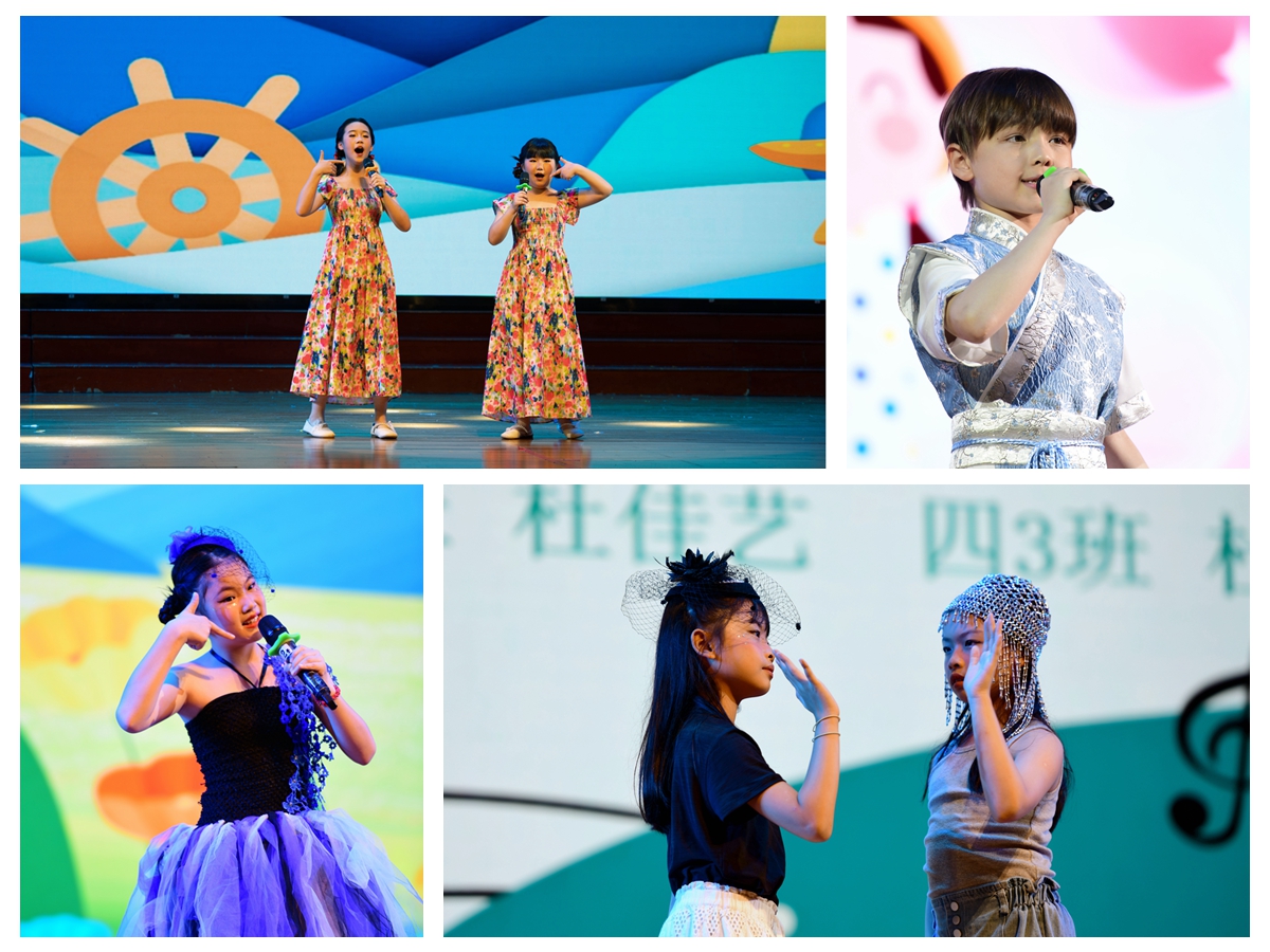 之后,四(6)班的嘉宾表演覃子珂同学以一曲《Naughty》惊艳了全场,当音乐响起,伴随着优美的舞步,完美地演绎了《Naughty》这首经典的曲目。五(11)班的郭奕锴则带来了一首动听的《青苹果乐园》,优美的旋律和动听的歌声中,充满着青春活力,潇洒的台风吸引着台下的每一个小观众