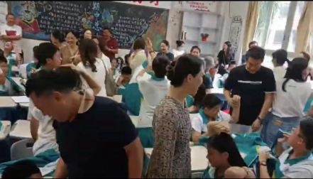未能及时找到孩子的家长现场即兴献舞,将全场的气氛推向高潮,使会议氛围轻松活泼。随后,家长们向孩子们的“第二个母亲”——班主任献花,表达了对老师们辛勤付出的感激之情。家长代表在发言中提到,老师们不仅要面对40多个学生,还要处理住校学生的青春期问题,其工作难度远超家长们的想象。然而,老师们凭借出色的专业素养和责任心,不到一年的时间就使得班级的风气、氛围、成绩取得巨大的进步,创造了教育奇迹。