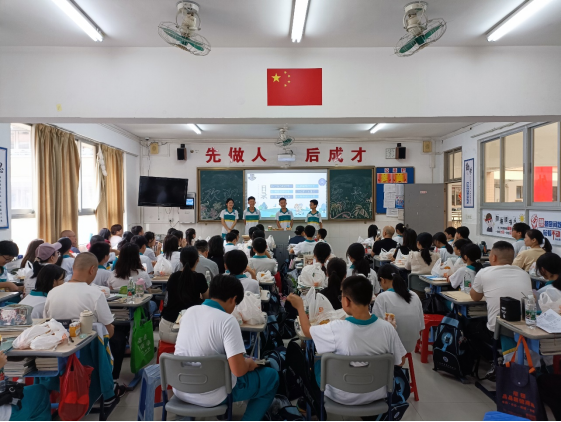 在同学们“击鼓传花”互动游戏的愉快氛围的铺垫,语文、数学、英语、政治、历史、体育老师陆续上台,从学科的学习重点、学习方法、存在问题、解决方案及期中考试结果的分析等方面与家长们进行了分享和深入交流,让家长们了解了孩子在学习情况及日常需要关注的重点方面。最后,班主任王欣老师为家长们介绍了同学们在学校的日常管理、小组竞赛、学校活动、生活管理等方面的情况,使家长们在了解同学们在学校生活学习的同时,也更加全面的了解学校的教育理念,包括校规校纪等方面。