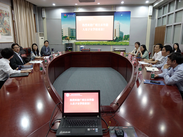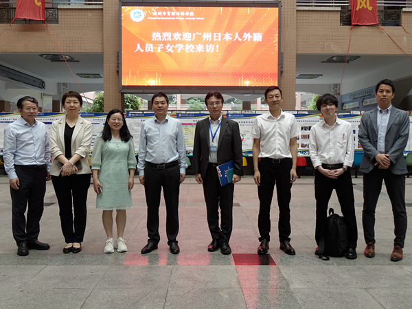 5月20日,广州日本外籍人子女学校校长大久耕一行5人前来我校进行交流访问。执行校长熊士军、副校长郭英涛热情接待了参观团一行。