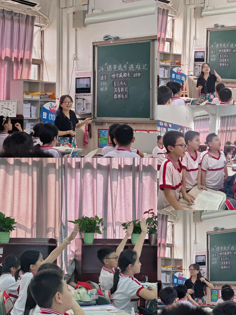 音乐与文学融合的“情味”,在詹荣老师的课堂上体现的淋漓尽致。詹老师在教学中巧妙融合音乐元素,丰富了文学课程,提高了学生对于艺术文学交融的感知能力。在教学中,詹老师围绕本单元语文要素是从人物的语言、动作等描写中感受人物的品质。教学方式多样化。借助情节曲线图,将课文按照事情发展的顺序“大雾夜航-海难发生-指挥救援一沉进大海”做了简单梳理,理清文脉,借助任务支架,以主问题切入,引导学生聚焦精彩情节、关键场景,通过默读批注、交流感悟、合作朗读、创设情境朗读、配乐朗读等方式,让学生在思维的碰撞中,在对课文内容的深刻领悟中,感受哈尔威船长镇定自若、舍己救人的品质,实现了情感、态度和价值观的升华。借助对重点语句的详细批注,引导学生体会文字背后所蕴含的情感,将文本阅读引向纵深,实现用心思考、用笔表达、深度学习、深度思维的学习过程。同时朗读教学贯穿课堂的始终,对话是这篇文章语言表达的一大特色,对话描写简短、真实、富有感染力。本节课,詹老师在充分考虑文本语言情境的基础上,引导学生调动已有的朗读技能,在语气、语调的处理上,融情于景,激活对话语言,将“朗读课文,读好人物对话”落到了实处。通过丰富多样的朗读体验,用丰富的语感引导学生解读文字背后的真情,促使学生用声音触摸语言文字的温度,与船长产生情感的共鸣,有效落实本单元的语文要素之一一从人物的语言描写感受人物的品质。共情之后,又联系课外事例,特别是刚刚发生的五一梅州特大公路塌方事件,结合课后习题“你对生命有了怎样的体会?”将孩子们引向了深入思考!
