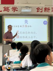 向燕萍老师给我们呈现的是一道色、香、味俱全的“语文大餐”----综合性学习《我的语文生活》。教学涵盖了招牌、广告、对联等和我们生活密切相关的内容。教学中,向老师既有创新,又求真务实,充分落实了语文核心素养的培养。向老师的课堂充分体现了学生的主体地位,课前让学生自主预习,课堂上学生质疑探究、小组合作,回答问题积极踊跃,课堂气氛活跃,收到了良好的教学效果,实现了“将语文核心素养‘融教法、入教案、落课堂’”的既定目标。
