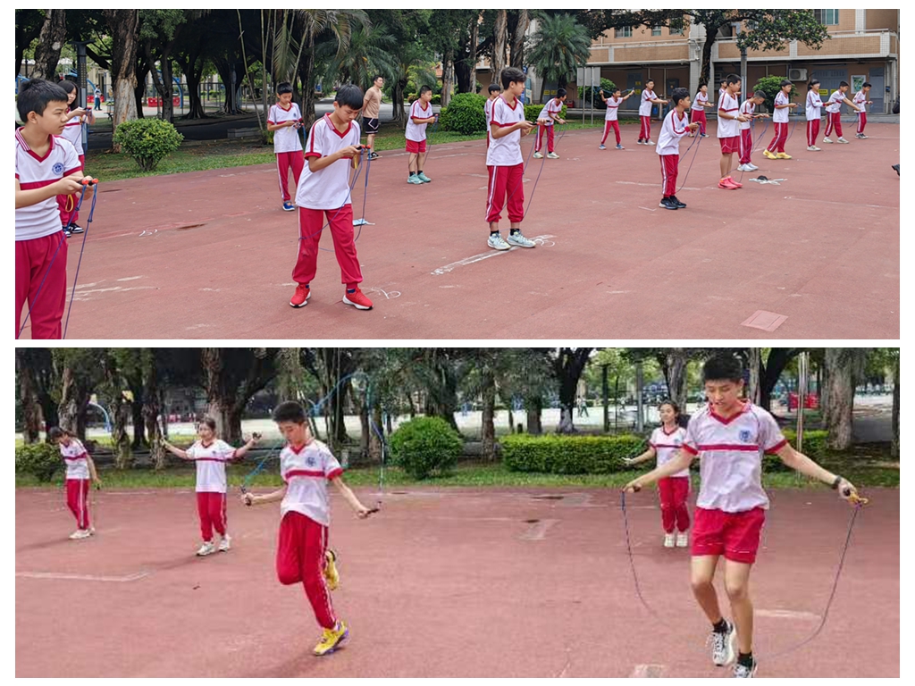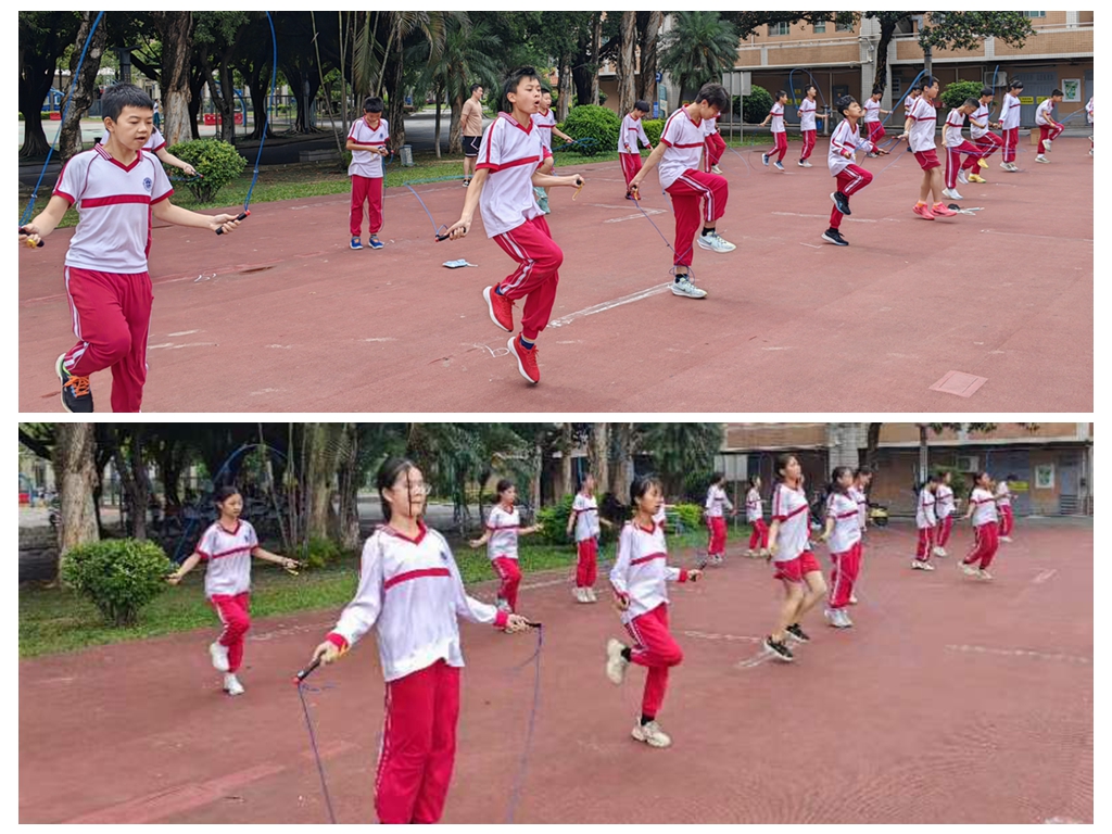 本次比赛是以班级为单位展开的,需要每一名同学的参与与努力。进行一分钟计时并记录每一名同学的跳绳成绩,最后根据班级所有同学累计成绩和参赛人数,计算出人均成绩。人均跳绳个数最多的班级为胜。随着比赛哨声的吹响,彩绳迅速飞舞起来,跳绳劈啪劈啪的拍击地面,清脆而激烈。虽然天气炎热,学生们仍然奋力拼搏,汗流浃背,互不相让。跳出自己最好水平,力求为班级取得更好的成绩。