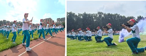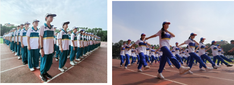 在军训教官的带领和校领导的监督下,同学们以最饱满的热情和最整齐的步伐进行了精彩的汇报表演:初一擒敌拳方队、初二半生雪手语操展示、初三倒计时方阵、高一女子军体拳、高二战术方队、高二女子匕首操方阵、国际部军歌礼仪操,赢得了在场师生的阵阵掌声。