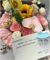 特别值得一提的是我们敬爱的班主任林炫仪老师,她是我们班级最坚实的后盾,默默付出,无微不至。正是她,在繁忙之中抽出宝贵时间,精心策划了这份满载心意的“神秘礼物”。花束的每一片花瓣,都经过林老师的细心整理与安放,这份惊喜她虽心知肚明,但当同学们手捧鲜花,满怀感激之情献上时,她的脸上依然洋溢着难以置信的感动与幸福。每一张贺卡,每一朵花,都仿佛化作了我们对林老师深深的敬爱与感恩之情的使者。