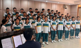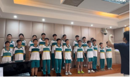 我们的合唱歌曲《有我》是一首难度较大的合唱曲目。刚开始训练,高难度的音域和复杂的节奏让我们感到吃力,但是大家没有退缩,相反,我们更加团结一心,齐心协力地排练。在声乐老师和班主任的指导下,我们每天大课间都进行反复排练,一遍遍,一次次,不断调整,甚至利用午休时间,焚膏继晷,直到每一个音符都让我们自己满意。