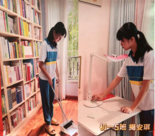 告别了小学,正式踏入中学的校园,初一新生开始了新的学期,初一年级生活部周末布置了家政活动,每周末在家自己整理房间、整理书柜、叠被子、叠衣服、扫地、拖地等,家长可以陪孩子做家务,提升一下整理内务的速度,培养动手能力,熟练掌握生活技能。