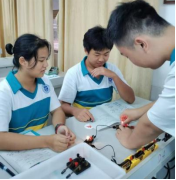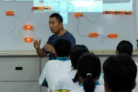 课程一开始,蔡老师请学生上台,用自己的方式连接电路,使两盏灯都发光。学生们踊跃参与,创造了不同的连法,由此引出新概念——串联和并联。这种方式生动形象,学生们印象深刻。