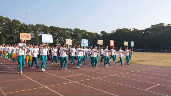 清晨,金秋送爽、阳光明媚,绿茵场上彩旗飘扬,鼓声震天,广州市实验外语学校第29届初中部学生运动会开幕式在万众瞩目中拉开了序幕。