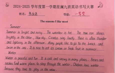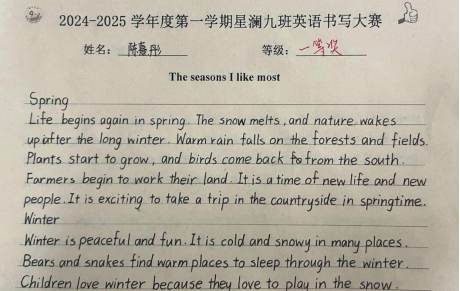 2024年11月11日晚上,初二9班一场精彩的英语书写大赛拉开帷幕。