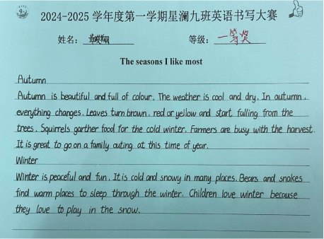 赛后,林炫仪老师和刘畅老师认真细致地评审,他们从字母大小写、笔画顺序、单词间距到整体排版,都严格把关。经过激烈角逐,有一批同学凭借出色的书写脱颖而出,分获一二三等奖。